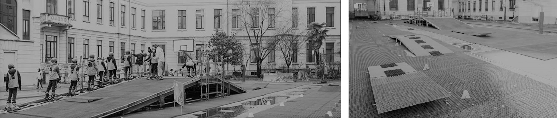 Dove non sussistono le condizioni di pendenze adeguate alle singole disciplina interessate, è necessario creare superfici e pendenze artificiali adeguate, con sistemi costruttivi modulari in metallo.